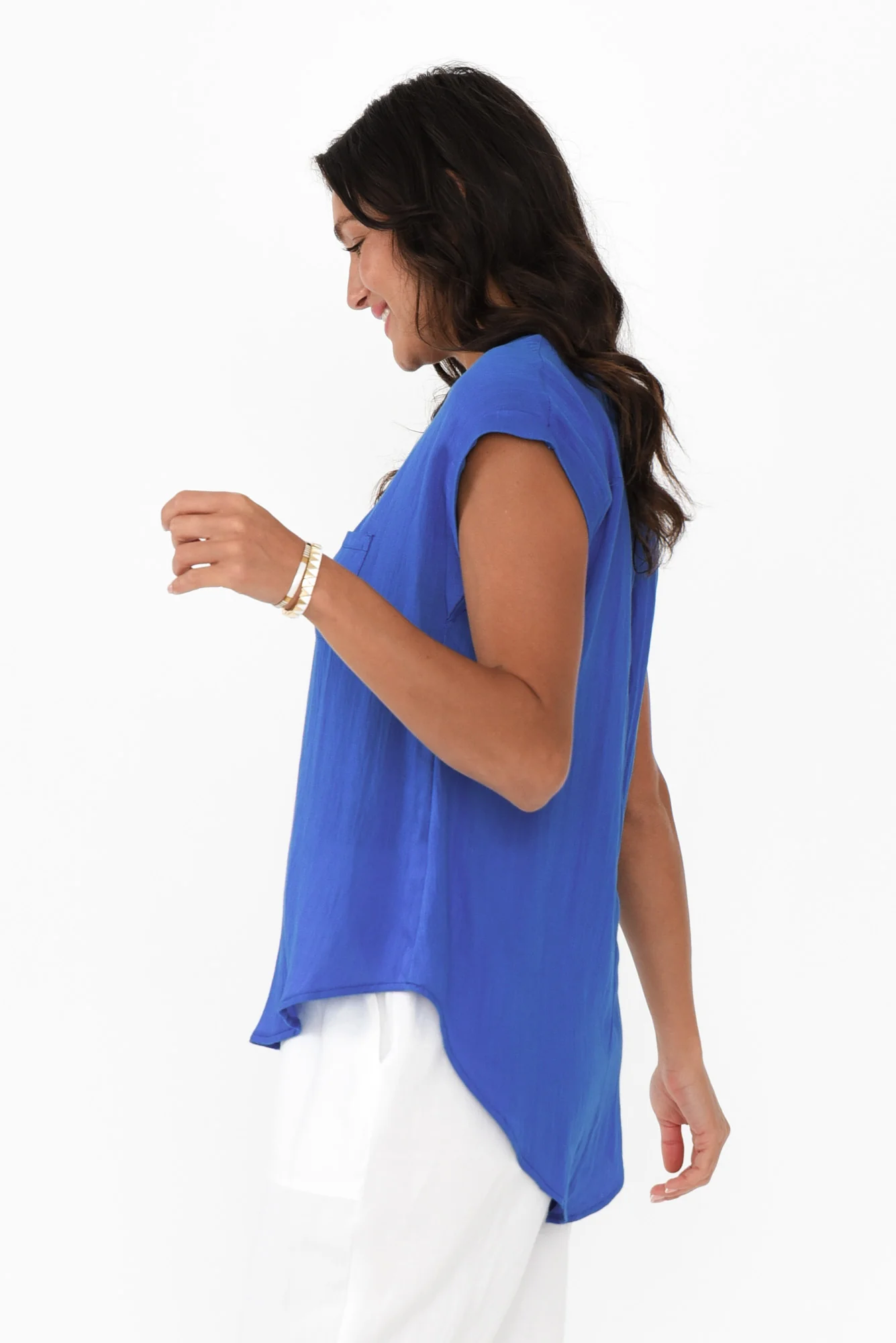 Aiden Cobalt Linen Blend Pocket Top