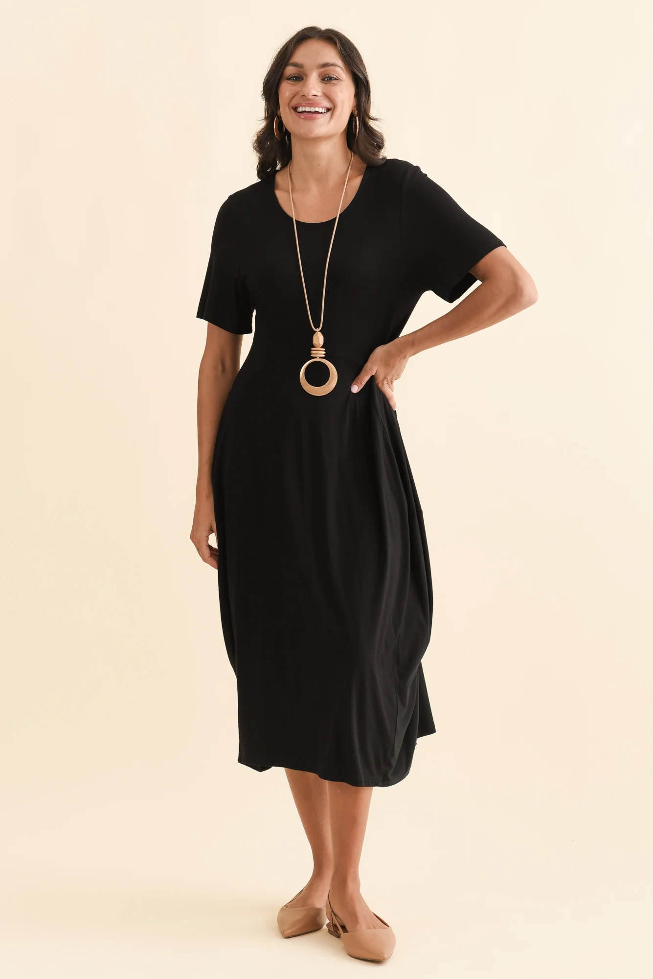 -70%Glenda Black Short Sleeve Crescent Dress—