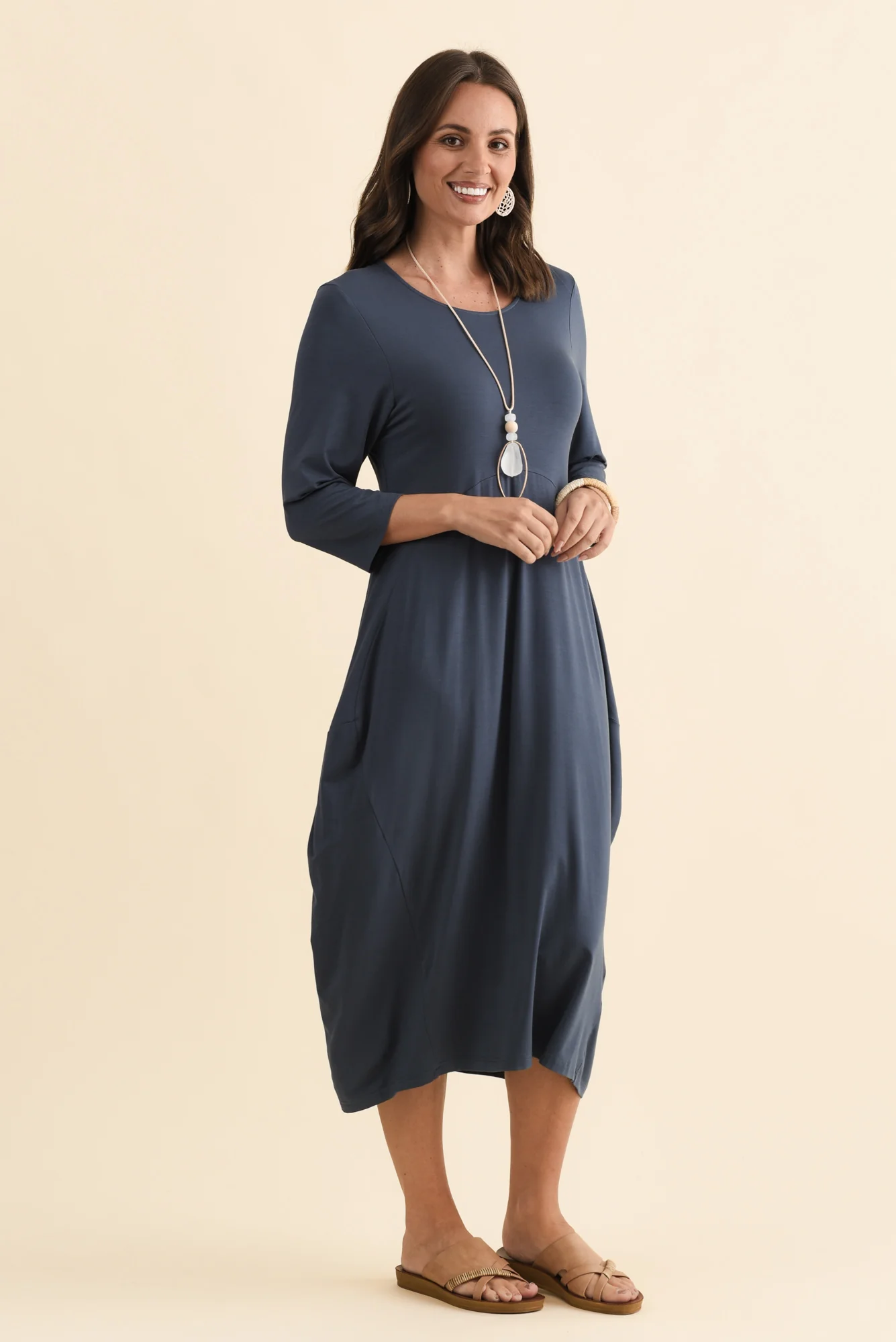 - 3/4 length sleeves in a straight, comfortable fit