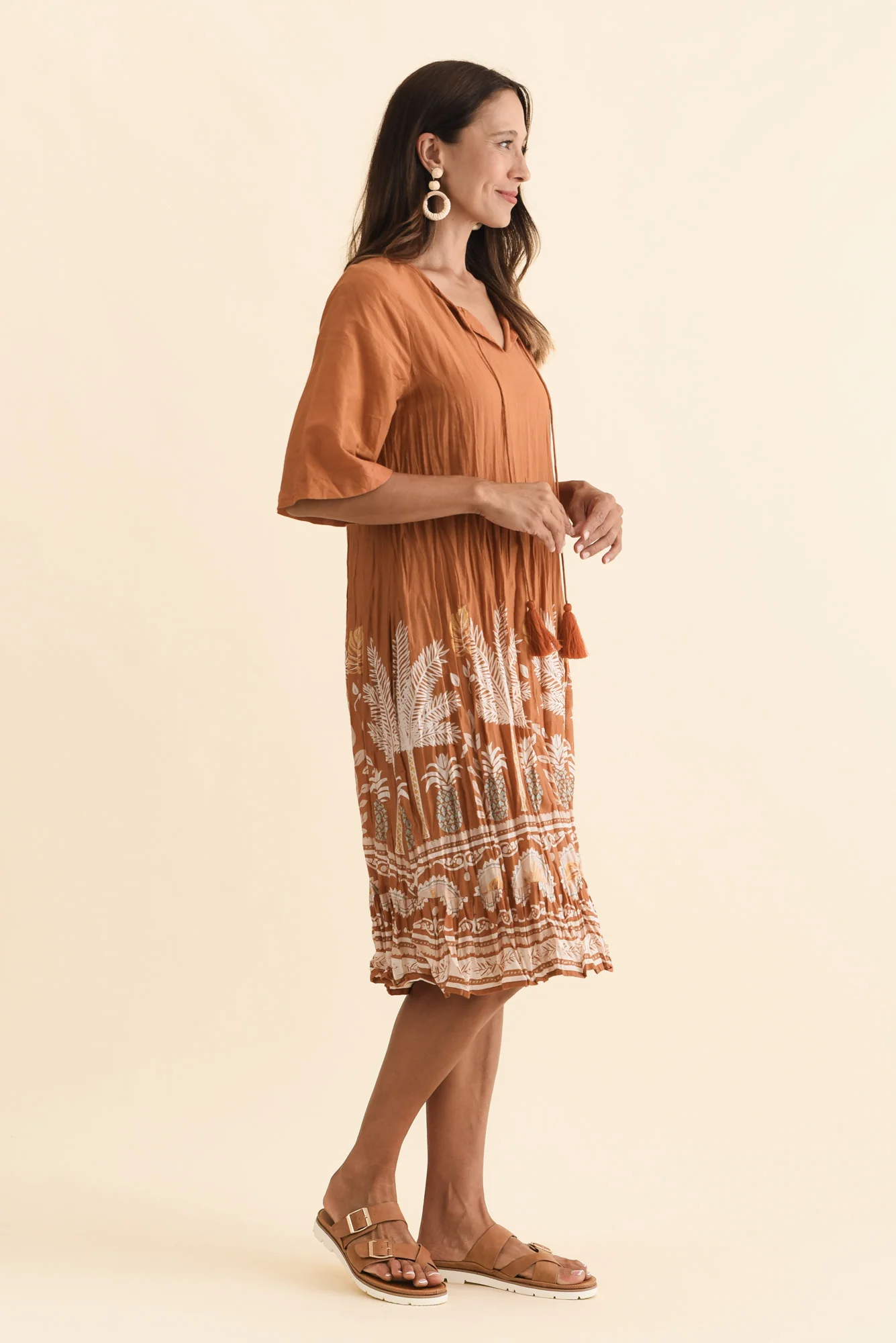 -70%Mila Brown Beach Crinkle Cotton Dress—