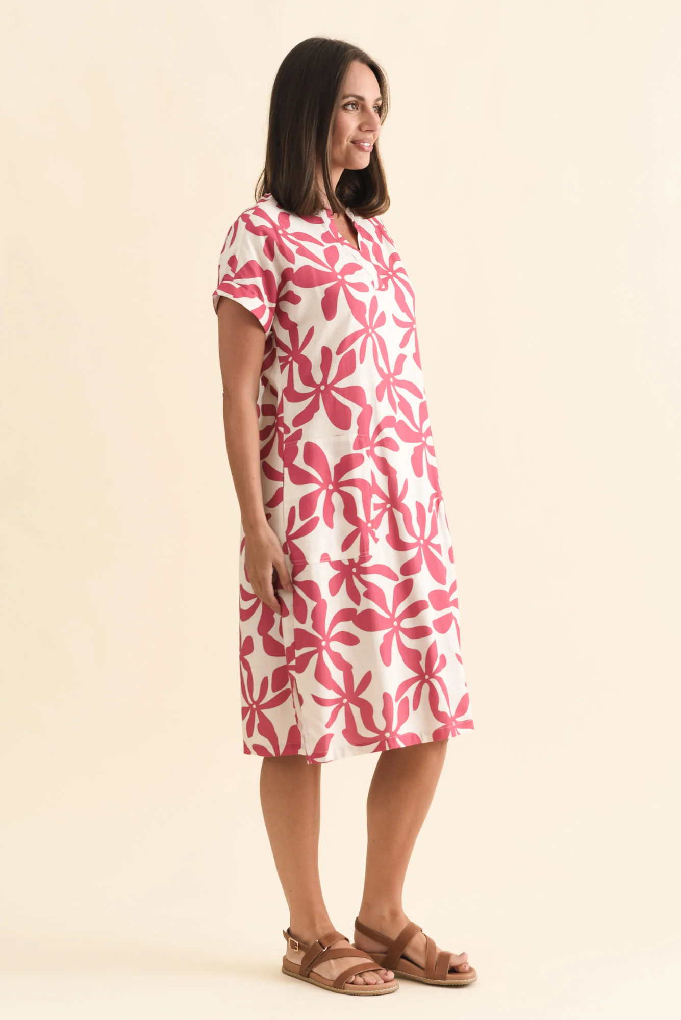 - COLOUR: Playful pink florals on a cool cream base