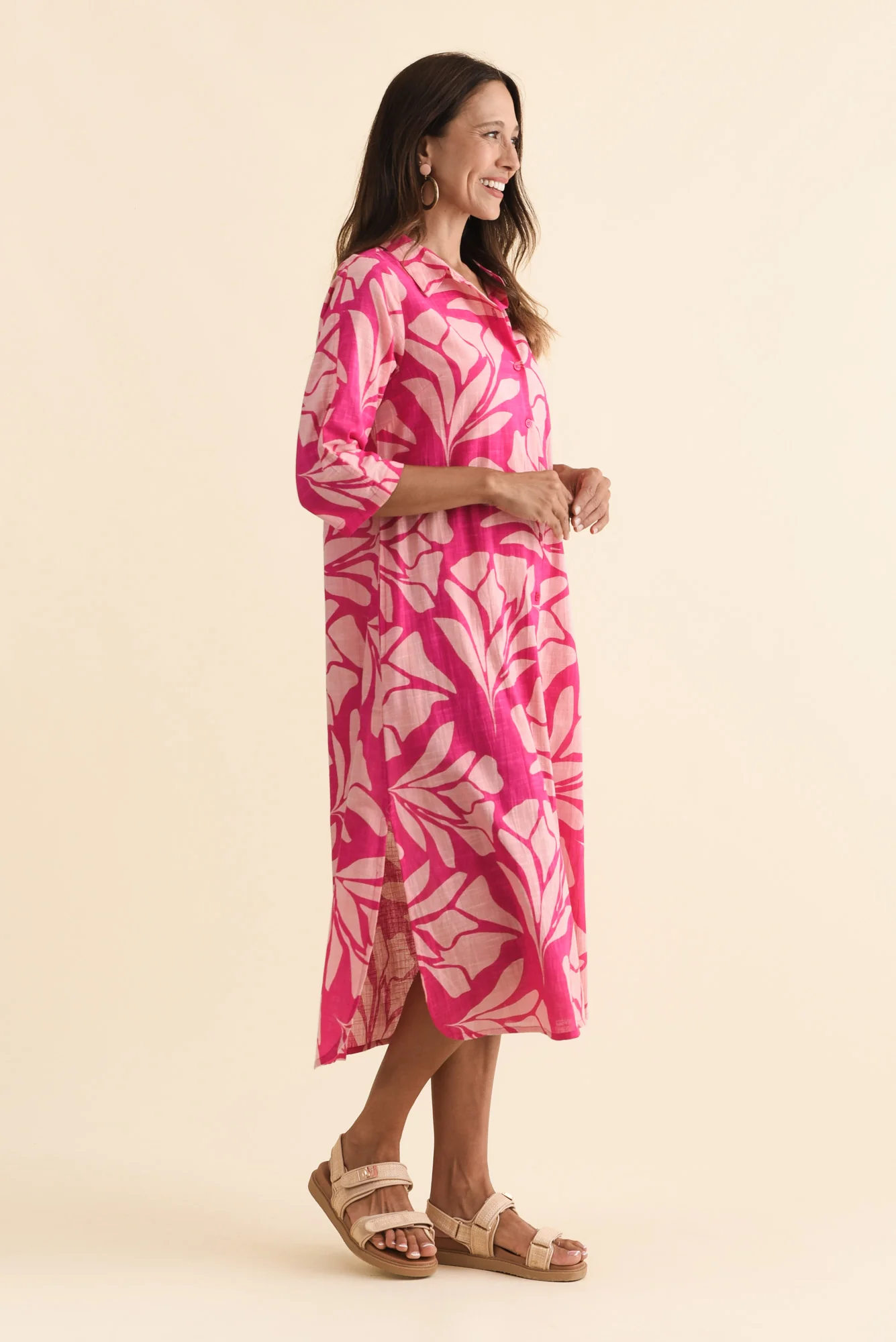 -70%Tricia Pink Floral Cotton Shirt Dress—