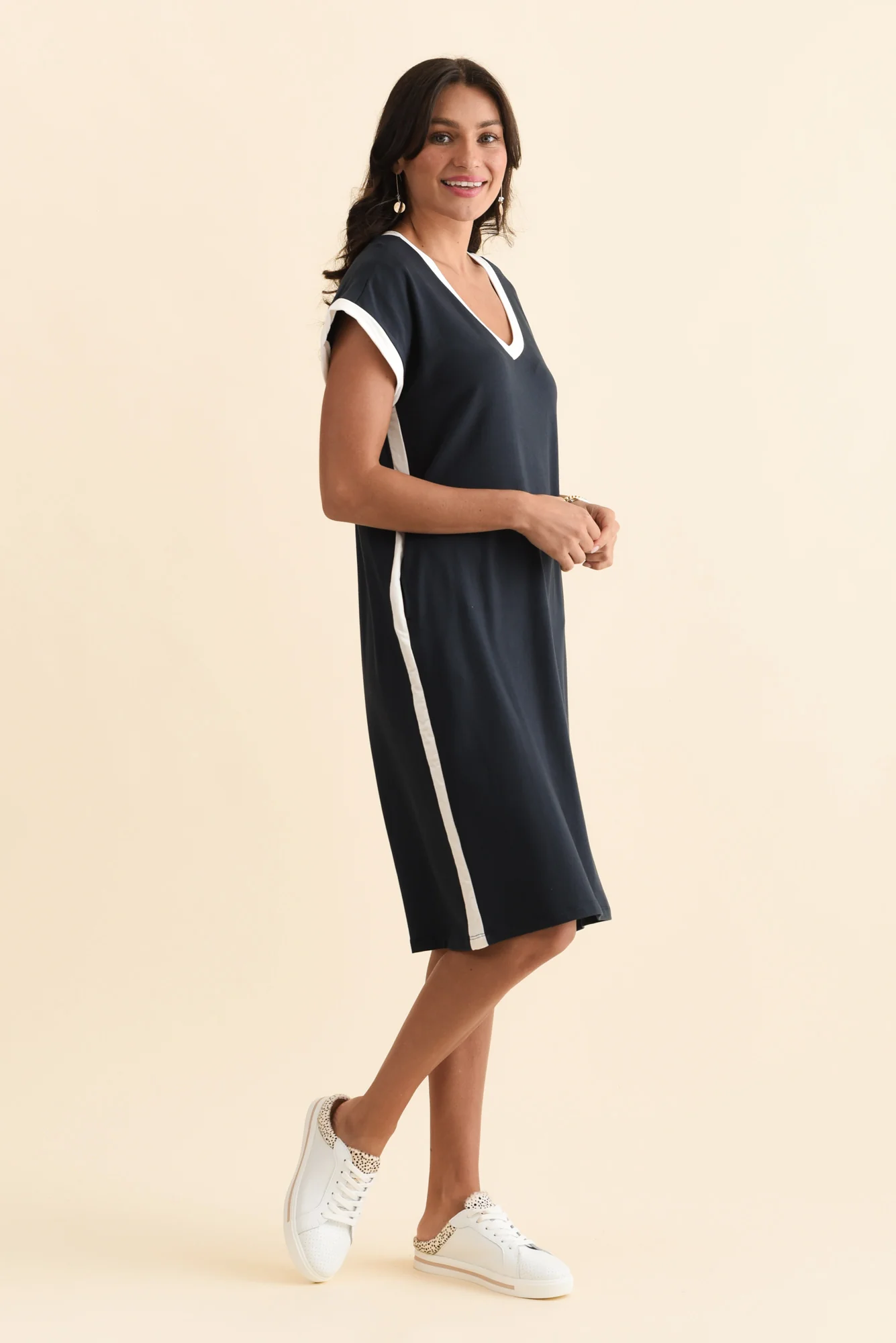- Stay effortlessly chic in this tee-style dress, crafted from a silky-smooth, mid-weight stretch jersey for all-day comfort